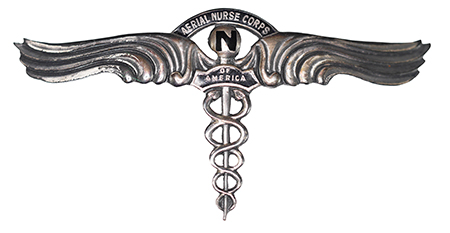 The Aerial Nurse Corps of America Cap Pin, Arm Patch, and the Commander’s Pocket Patch.
